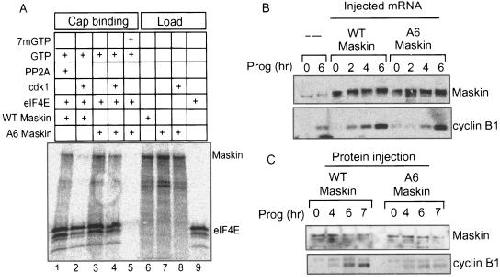 Differential phosphorylation controls Maskin association with eukaryotic translation initiation factor 4E and localization on the mitotic apparatus., Mol Cell Biol 2005 |