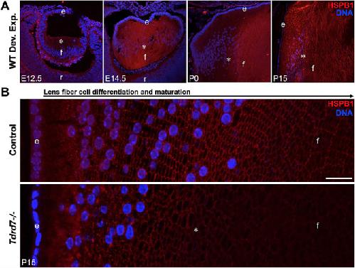 The Tudor-domain protein TDRD7, mutated in congenital cataract, controls the heat shock protein HSPB1 (HSP27) and lens fiber cell morphology., Hum Mol Genet 2020 |