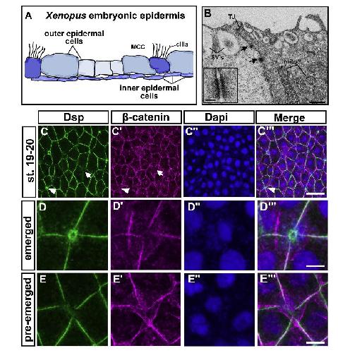 Desmoplakin is required for epidermal integrity and morphogenesis in the Xenopus laevis embryo., Dev Biol 2019 |
