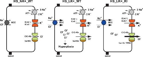 Regulation of ClC-K/barttin by endocytosis influences distal convoluted tubule hyperplasia.,