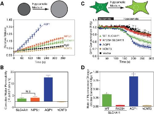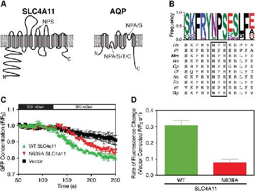 Transmembrane water-flux through SLC4A11: a route defective in genetic corneal diseases.,
