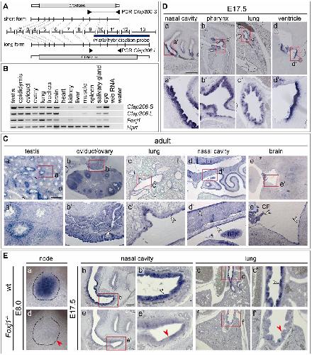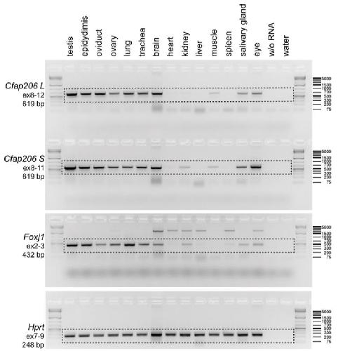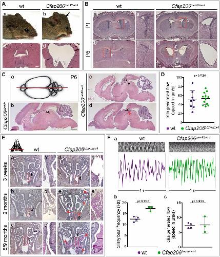 The FOXJ1 target Cfap206 is required for sperm motility, mucociliary clearance of the airways and brain development.,