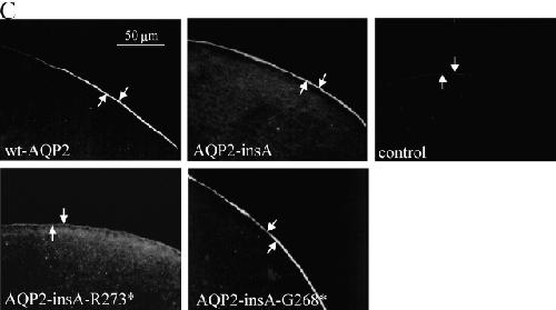 Patients with autosomal nephrogenic diabetes insipidus homozygous for mutations in the aquaporin 2 water-channel gene.,
