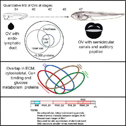 Time-resolved quantitative proteomic analysis of the developing Xenopus otic vesicle reveals putative congenital hearing loss candidates.,