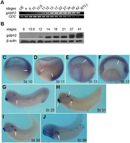 Xenopus as a model system for the study of GOLPH2/GP73 function: Xenopus GOLPH2 is required for pronephros development.,