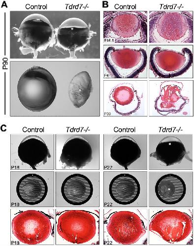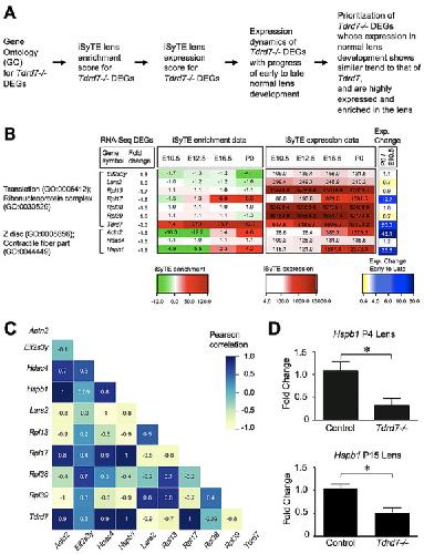 The Tudor-domain protein TDRD7, mutated in congenital cataract, controls the heat shock protein HSPB1 (HSP27) and lens fiber cell morphology.,