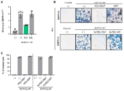 Uncoupling the BMP receptor antagonist function from the WNT agonist function of R-spondin 2 using the inhibitory peptide dendrimer RWd.,