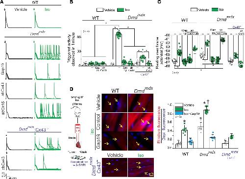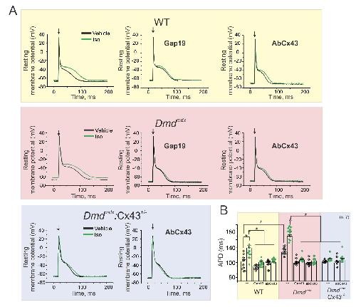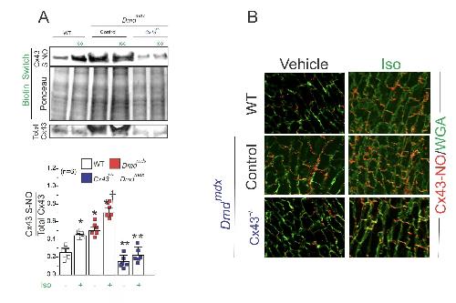 S-nitrosylation of connexin43 hemichannels elicits cardiac stress-induced arrhythmias in Duchenne muscular dystrophy mice.,