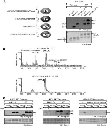 The target of the NSD family of histone lysine methyltransferases depends on the nature of the substrate.,