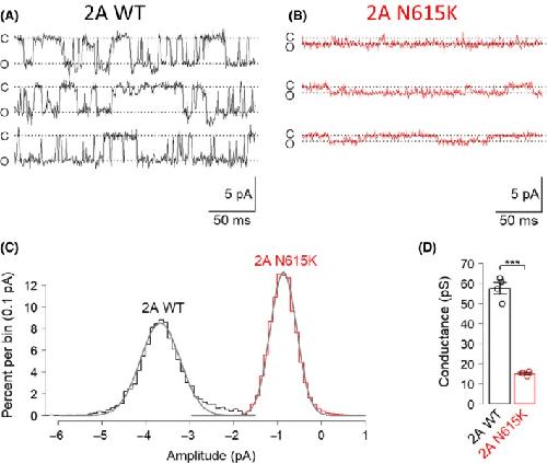 The human NMDA receptor GluN2AN615K variant influences channel blocker potency.,