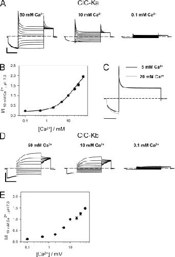 A regulatory calcium-binding site at the subunit interface of CLC-K kidney chloride channels.,