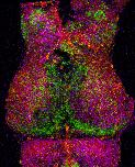To generate original lines of mice expressing Brainbow in neurons, the Brainbow-1 and Brainbow-2 constructs were placed under the control of regulatory elements from the Thy1 gene (murine), which are known to drive expression at high levels in a variety of neuron types. In Brainbow transgenes, Cre/lox recombination is used to create a stochastic choice of expression between three or more fluorescent proteins (XFPs): RFP fluorescence; YFP and/or memCFP fluorescence after Cre-mediated recombination. |