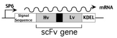 | Description: | Anti-BMPR1 ScFv-E4, single chain antibody selected for specificity to BMPR1. Plasmid was constructed that contained an SP6 promoter for in vitro mRNA synthesis, the signal sequence from the Xenopus FGF receptor for secretion followed by the KDEL endoplasmic reticulum retention signal. The scFv-E4 gene was inserted into this plasmid as a NcoI/NotI fragment. |