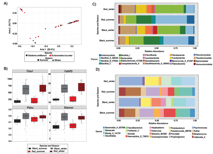 Seasonality shapes gut microbiota composition in two sympatric sea urchins.