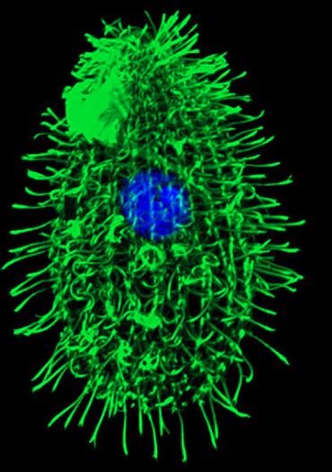 Immunoflourescence microscopy of a T. thermophile cell using teh HSHB antibody 12G10 anti-tubulin (green) , from PMID: 32679518, Fig1A Larger Image Printer Friendly View |
