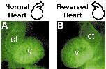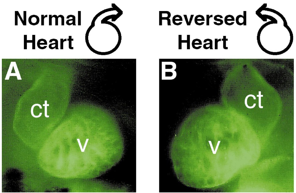 with anterior at the top, stained with a monoclonal antibody against bovine cardiac troponin T. (A) Normal left–right orientation of the