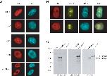 Figure 1—figure supplement 1. KDM2B is found throughout the nucleus and not concentrated in the nucleolus.(A) Endogenous KDM2B immunofluorescence in five different mammalian cell lines. KDM2B signal is in red (left) and DAPI signal in blue (right). In all cell types KDM2B is a broadly distributed throughout the nucleus and not concentrated in the nucleolus as previously reported (Frescas et al., 2007). (B) Immunofluorescence in HeLa cells for Flag-tagged KDM2B and endogenous fibrillarin, a nucleolus marker. KDM2B is largely excluded from nucleoli. (C) The KDM2A and KDM2B antibodies specifically recognize their respective antigens. Empty expression vector, Flag-KDM2A, and Flag-KDM2B were transiently transfected into 293T cells. Whole cell extracts were made and probed with anti-KDM2A (left panel), anti-KDM2B (centre panel), or anti-Flag (right panel).DOI: http://dx.doi.org/10.7554/eLife.00205.004 |