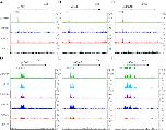 Figure 6. Depletion of KDM2B causes a reduction in RING1B occupancy.(A) KDM2B ChIP-seq signal was plotted at CGIs in the control (solid blue line) and knockdown cell line (dotted blue line). Sequencing signal in the input samples over the same regions are indicated as solid or dotted black lines. KDM2B ChIP-seq signal is specifically lost over CGIs genome-wide in the KDM2B knockdown cell line. (B) A snapshot showing RING1B ChIP-seq signal in the control cell line illustrating a previously identified high magnitude RING1B binding sites (i.e. Atf3) and novel low magnitude RING1B binding sites. Input sequencing traces over the same region are shown in black. Bio-CAP-seq signal indicates regions containing non-methylated DNA. Above the sequencing traces gene promoters are show by black arrows and exons by vertical black lines. CGIs are shown as green bars with previously identified RING1B peaks and novel RING1B peaks indicated with purple boxes. (C) RING1B ChIP-seq signal from the control (solid purple line) and KDM2B knockdown cell line (dotted purple line) were plotted over previously identified CGI associated RING1B binding sites. Input sequencing signal was plotted over same regions. In the KDM2B knockdown line there is a specific reduction of RING1B binding over the CGI. (D) The same ChIP-seq signal as in part (C) was plotted over novel low magnitude binding sites identified in part (B). In the KDM2B knockdown cell line there is an even more severe loss of RING1B binding at these novel RING1B occupied sites. (E),(F) Examples of ChIP-seq profiles at individual high (E) and low (F) magnitude RING1B binding sites showing clear reduction of RING1B following KDM2B knockdown.DOI: http://dx.doi.org/10.7554/eLife.00205.011Figure 6—figure supplement 1. Conditional removal of RING1B validates the identity of novel peaks identified in the RING1B ChIP-seq.Eight genes corresponding to novel RING1B peaks identified in ChIP-seq were examined by ChIP quantitative-PCR (bar graphs) in the RING1B conditional ESC cells before (blue bars) and after (red bars) deletion of RING1B by addition of tamoxifen. In all cases deletion of RING1B leads to a loss of RING1B ChIP signal by quantitative-PCR, indicating that these are bona fide RING1B occupied sites. RING1B ChIP-seq traces are shown in each case for comparison. Error bars indicate the SEM for three biological replicates.DOI: http://dx.doi.org/10.7554/eLife.00205.012 |