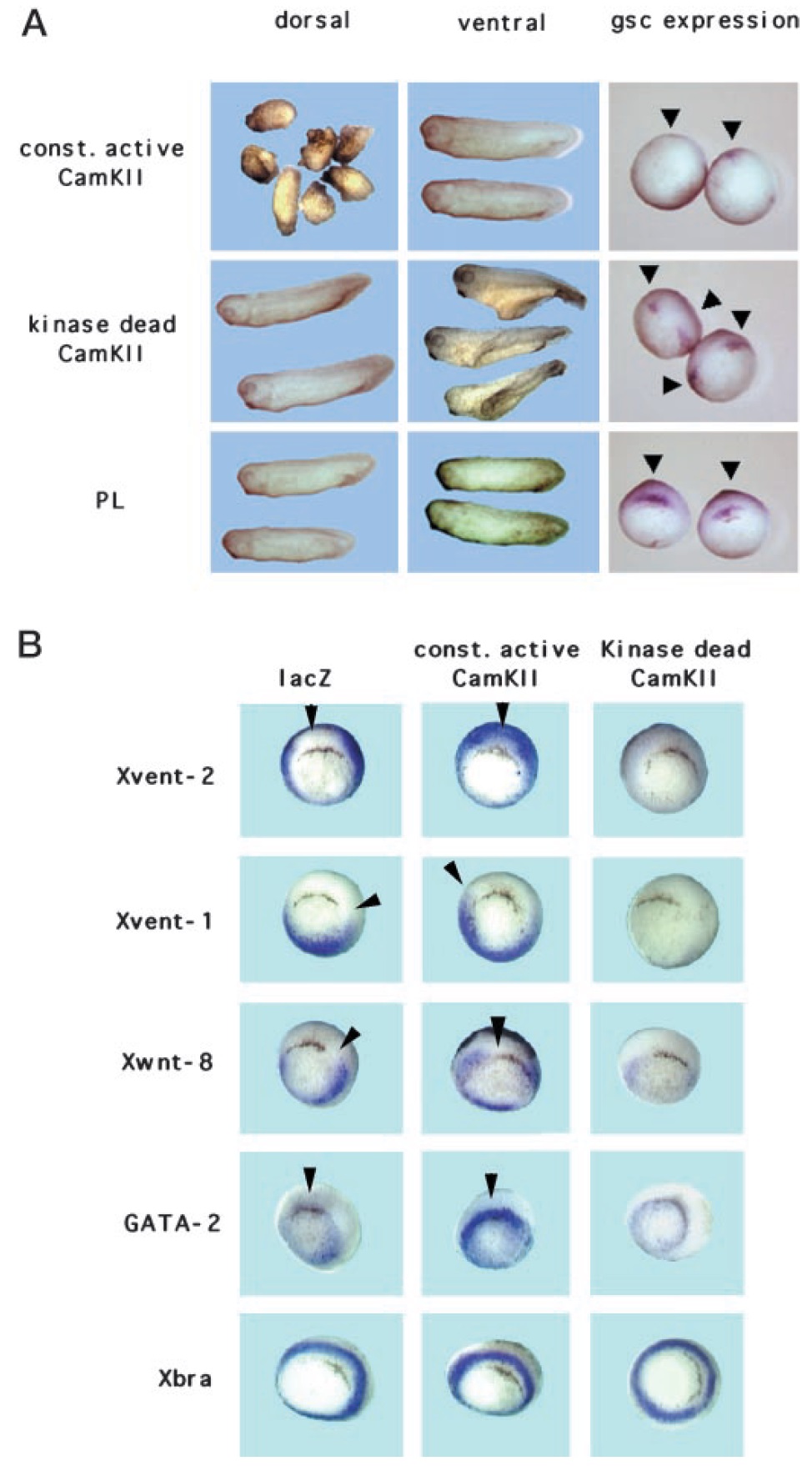 active mutant CamKII T286D (1 ng) results in ventralization of embryos