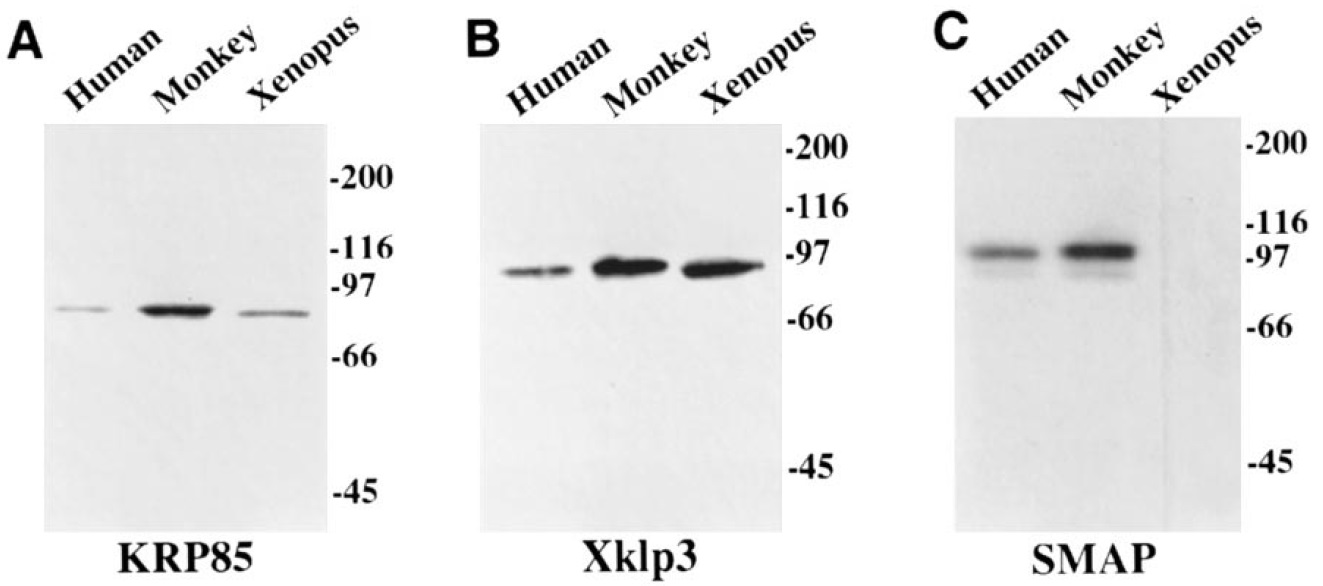 band of C95 kDa in retina from human, monkey and Xenopus. (C) Antibodies against the human KAP protein (SMAP)