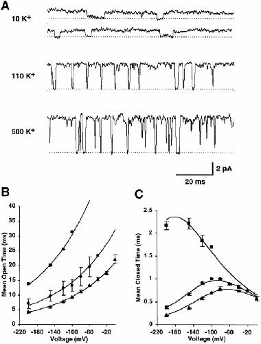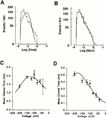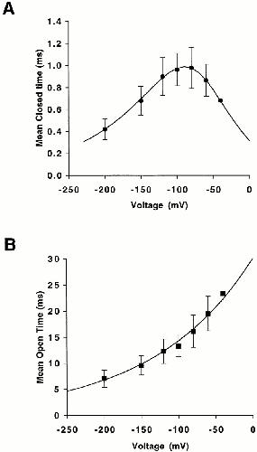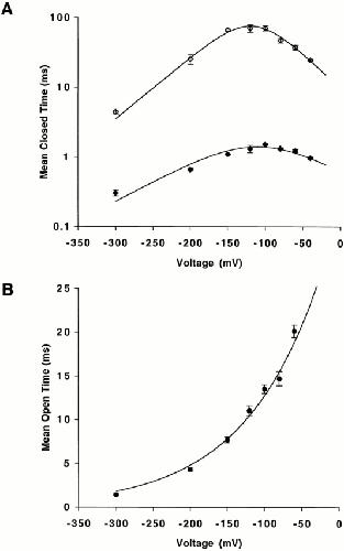 Figure 6. Voltage dependence of mean closed and open time