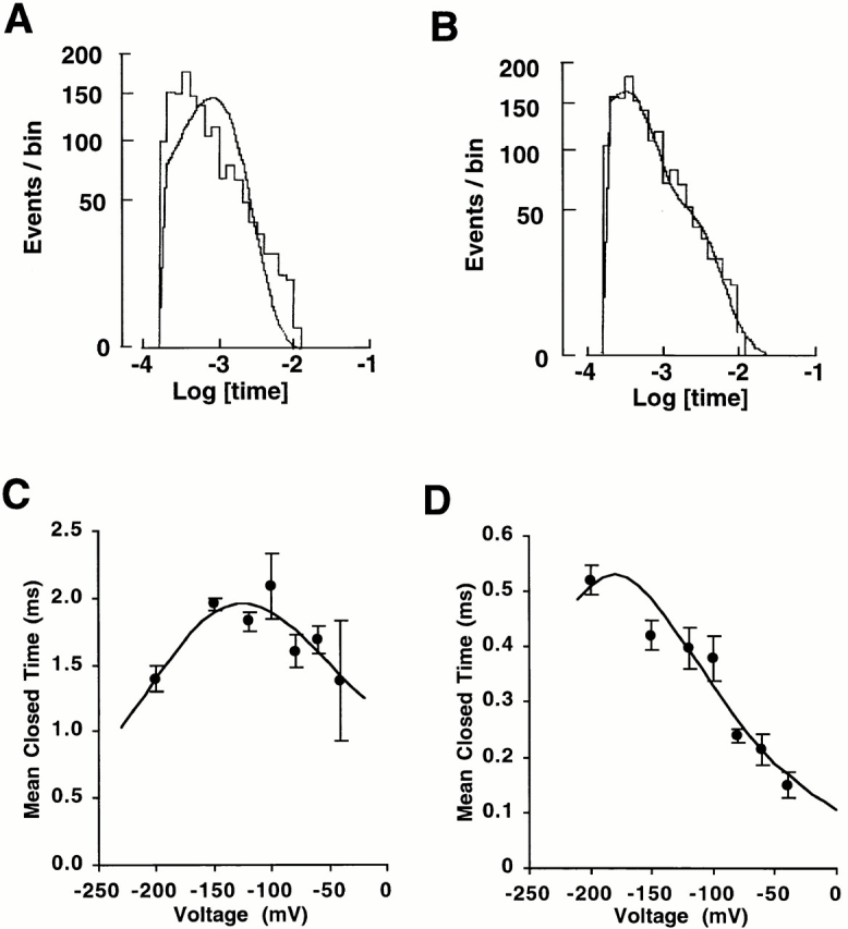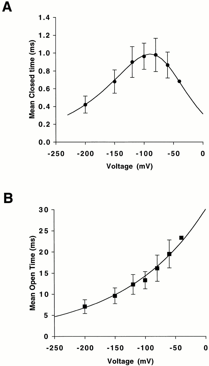 Figure 2. Voltage dependence of mean closed and open time.