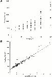 Na+ (×), and 10 Li+ (⋄). The straight line in B is a linear regression line with slope of 23 and y intercept of 17 (correlation coefficient = 0.985).