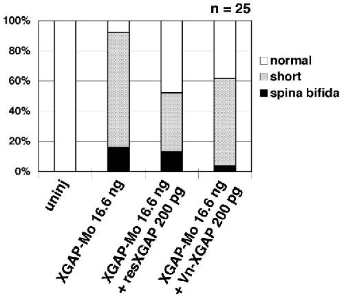 200 pg of resXGAP or Venus-tagged XGAP was co-injected with XGAP-Mo into two dorsal