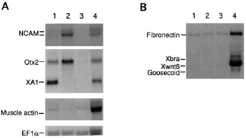 NCAM are shown (Kintner and Melton, 1987). EF1a and fibronectin probes are controls for loading.