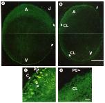 Abbreviations: A. animal hemisphere; V, vegetal hemisphere; PG. pigment granules.