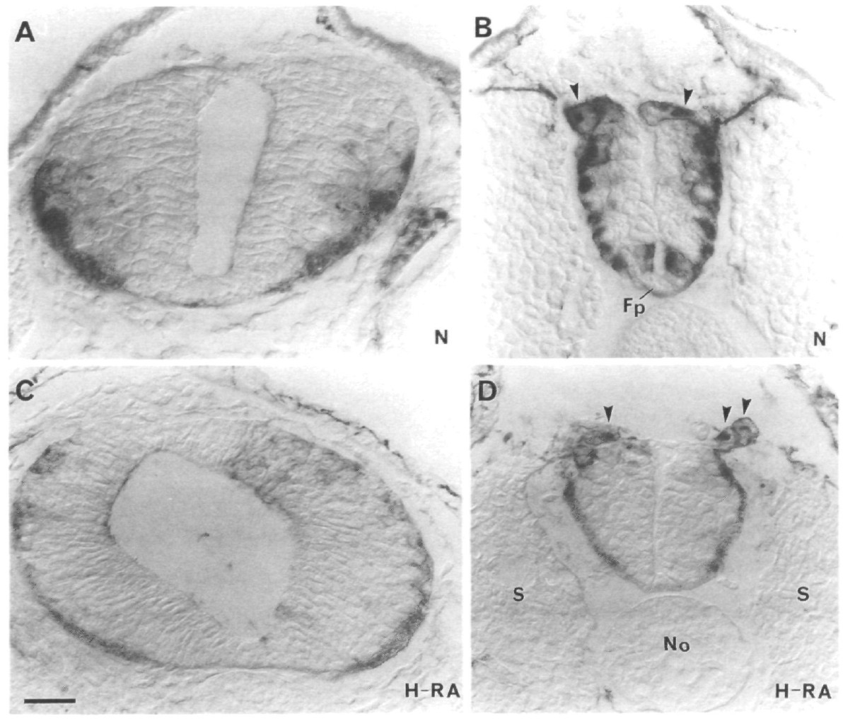 not altered by RA treatment. Arrowheads point to Rohon-Beard neurons. Fp, floor plate; N, normal embryo; No,