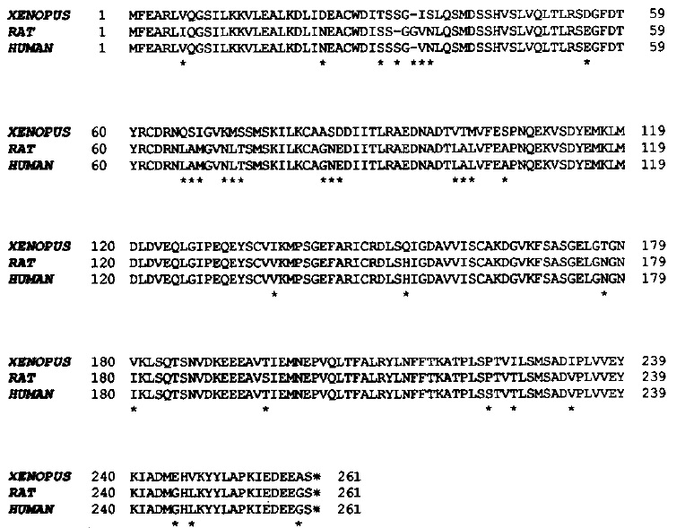 FIG. 2. Comparison between Xenopus, rat, and human deduced
