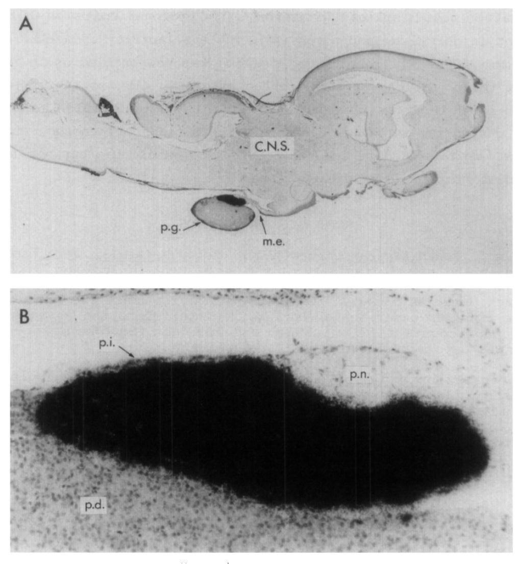 system; p.g.: pituitary gland; m.e.: median eminence; p.n.: pars