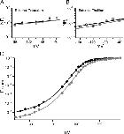 Figure 15. Simulated data with Scheme 3. (A) GV curves calculated from currents simulated with Scheme 3 with parameters that can account for permeating potassium (black trace) and permeating thallium (gray trace). The kinetic effects of permeating thallium can be mimicked by enhancing the exit rates from the open state. All of the other rate constants are constrained by the model. (B) Simulated currents for permeating potassium (black trace) and thallium (gray traces) reveal that the activation rate is altered by an increase in the rate from going to the open state to the flicker state. (C) Similarly, deactivation rates are decreased by the increase in the open to flicker rate in simulated currents for permeating potassium (black trace) and thallium (gray trace).