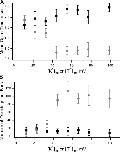 Figure 11. Concentration dependence of the mean open time and number of openings per burst. Increasing concentrations of potassium (black squares) had little to no effect on the mean open time and number of openings per burst. However, increasing concentrations of thallium (gray circles) decreased the mean open time and increases the number of openings per burst. Membrane potential was held at 70 mV.