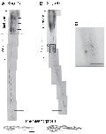 Fig. 7. NADPH-d reactivity in the spinal cord of a stage 64 froglet after metamorphic climax. Schematic of the CNS wholemount at left indicates levels at which