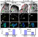 Fig 9. FRET analysis in vivo for Rac and RhoA after modification of Syn4 and PCP signaling. [Xenopus] Embryos were injected with the FRET probes for Rac and RhoA and membrane-RFP. Before migration, the NCs were grafted into wild-type host embryos. NC migration was observed in vivo and then the embryos were fixed, sectioned and processed for FRET analysis. (A-D) Overlay of membrane-RFP and bright-field images. Dotted circle indicates the neural tube; arrow, direction of migration. (Aâ²-Dâ²) Fluorescence from the FRET probes. Arrow indicates the selected cells shown in E-H. (E-H) Examples of FRET efficiency. Arrow indicates the direction of migration. (A,Aâ²,E) Rac probe in cells injected with control MO. (B,Bâ²,F) Rac probe in cells injected with syn4 MO. (C,Câ²,G) RhoA probe in cells injected with control MO. (D,Dâ²,H) RhoA probe in cells injected with DshDep+. (I) FRET efficiency for Rac. (J) FRET efficiency for RhoA. ***P<0.005. Scale bar: 10 μm.
