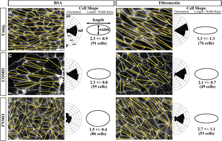 Figure 4. Mediolaterally Oriented Cell Elongation Can Be Rescued by Planar FN