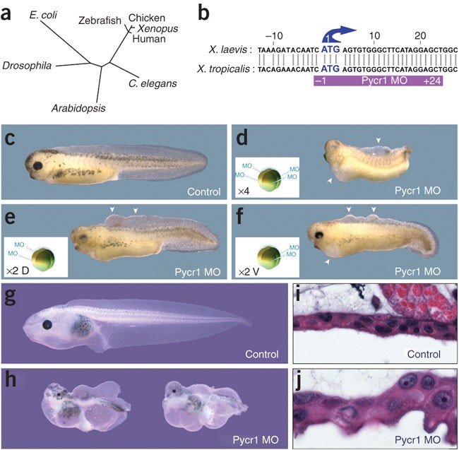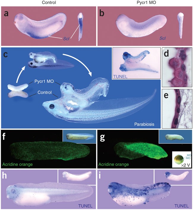 Autosomal recessive cutis laxa (ARCL) describes a group of syndromal disorders that are often associated with a progeroid appearance, lax and wrinkled skin, osteopenia and mental retardation. Homozygosity mapping in several kindreds with ARCL identified a candidate region on chromosome 17q25. By high-throughput sequencing of the entire candidate region, we detected disease-causing mutations in the gene PYCR1. We found that the gene product, an enzyme involved in proline metabolism, localizes to mitochondria. Altered mitochondrial morphology, membrane potential and increased apoptosis rate upon oxidative stress were evident in fibroblasts from affected individuals. Knockdown of the orthologous genes in Xenopus and zebrafish led to epidermal hypoplasia and blistering that was accompanied by a massive increase of apoptosis. Our findings link mutations in PYCR1 to altered mitochondrial function and progeroid changes in connective tissues.
