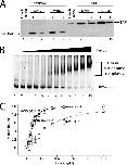 FIGURE 7. Fun30 contains a CUE motif, but no specific interaction with ubiquitinylated histones can be detected. A, schematic representation of CUE domain location within Fun30. A native gel in which ∼200 nm HeLa mononucleosomes were incubated with increased quantities of Fun30 (∼5–320 nm, lanes 2–8) was transferred to a polyvinylidene difluoride membrane. B, the transfer of ubiquitinylated histones was monitored by Western blotting using an anti-ubiquitin antibody. C, Western blotting to detect the transfer of total H2B. No difference in the efficiency with which ubiquitinylated or total H2B is transferred could be detected.