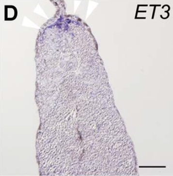 edn3 (endothelin-3) gene expression in Xenopus laevis embryo, assayed via in situ hybridization, NF stage 31, coronal section, dorsal up.