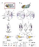 Fig. S5. A model for tubulin’s role in LR asymmetry in Xenopus embryos. (A) In unperturbed embryos, the right-biased cytoskeleton (1, 2) is likely to derive from the orientation of the microtubule organizing center (centriole) with respect to the dorso-ventral and animal-vegetal axis, as proposed originally for a chiral “F-molecule” (3). Correct function of both α-tubulin (determining the structure of the microtubules along the animal-vegetal axis, and those involved in the dorso-ventral axis induction at cortical rotation shortly after fertilization) and γ-tubulin (mediating anchoring of LR-oriented microtubules to the MTOC) results in the proper linkage of the MTOC to the two axes, allowing intracellular transport of LR determinant cargo molecules (4) to the right side, which ultimately results in correct organ situs. (B) Mutations in the GTPase-activating domain of tubulin suppress correct microtubule dynamics and promote po- lymerization (5). Thus, the previously described (1) subtle right-ventral bending of the cytoskeleton would be altered when mutated α-tubulin and γ-tubulin subunits were introduced at the early one-cell stage. In the absence of rightward intracellular transport of maternal proteins important for subsequent LR patterning steps, the downstream steps are randomized, resulting in a mixture of wild-type and heterotaxic embryos.