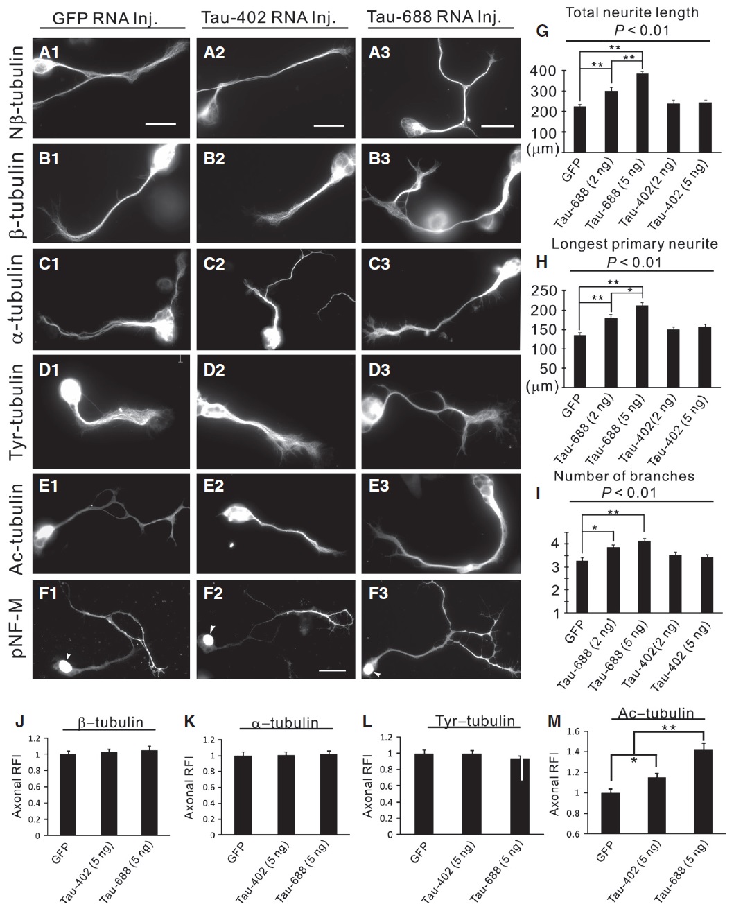 details) within neurites for each of the tubulin antibodies in (D1âG2) revealed no significant differences in tau MO neurons relative to that of control MO neurons
