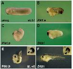 Figure S3. Overexpression of PN1 and Dkk1 promote anterior development (A) Uninjected embryo at tailbud stage. (B-D) PN1.a, PN1.b, and Dkk1 mRNA induce enlarged head and shortened trunk/tail structures. (E,F) PN1.b and Dkk1 mRNA widen eye structures in tadpole embryos. Insets show magnification of eye. Note the expansion of the optic fissure (arrowhead) that is characteristic of coloboma. Embryos were animally injected at the 4-cell stage with mRNAs: PN1.a, 4 ng; PN1.b, 16 ng; Dkk1, 32 pg. Indicated phenotypes were observed in B, 40/54; C, 23/23; D, 34/34; E, 26/31; F, 46/53. |