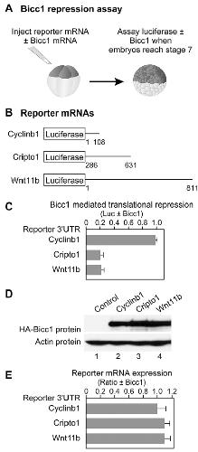 with mRNA encoding HA-tagged Bicc1 along with different reporter mRNAs.