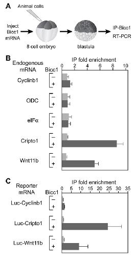 Bicc1 was immunoprecipitated and the associated RNAs analyzed as