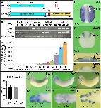 Figure 1. Expression and activity of the two dermatan sulfate epimerases inXenopus embryos. (A) Protein structures. Xenopus DS-epi1 and DS-epi2 contain cleavable signalpeptides (arrows), an epimerase domain, and two transmembrane domains. In DSepi1, the catalytic residues His-205, Tyr-261, and His-450 are indicated, which are also conserved in DS-epi2. DS-epi2 contains an additional sulfotransferase-like domain. (B) RT-PCR analysis. Histone H4 is used as the loading control. A minimum of two experiments (nâ¥2) was performed with three independent biological samples. (C) DS epimerase activity in early Xenopus embryos. Mean ±SDEV from triplicates. Two independent experiments. (D-Eâ) Whole-mount in situ hybridization of neurula embryos in the dorsal view (D,E) and transversal section (Dâ,Eâ). The arrowheads label the pre-migratory CNC cells. The dashed looped line demarcates the Snail2+ CNC embedded in the Dse expression domain. (F) qPCR analysis in CNC explants at stage 18. c-Myc was used as a CNC cell marker. Note that Dse but not Dsel mRNA is be detected. Mean ±SDEV from triplicates. Number of biological replicates n=4. (G-Iâ) Tailbud embryos in the lateral view (G-I) and horizontal section (Gâ-Iâ). Note that Dse and Dsel overlap with Twist expression in migrating CNC cells. Section planes are indicated with dashed straight lines. br, branchial arch segments; CNC, cranial neural crest; epi, epidermis; hy, hyoid segment; ma, mandibular segment; no, notochord; SP, signal peptide; TM, transmembrane domains. |