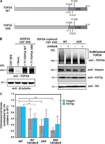 Ryu, SUMOylation of the C-terminal domain of DNA topoisomerase IIα regulates the centromeric localization of Claspin. 2015, Pubmed , Xenbase