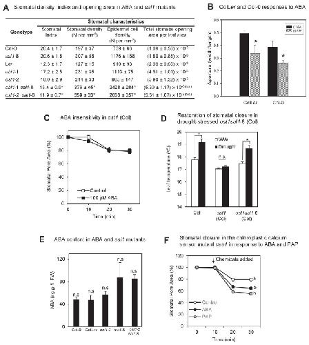 Hubbard, Abscisic acid and CO2 signalling via calcium sensitivity priming in guard cells, new CDPK mutant phenotypes and a method for improved resolution of stomatal stimulus-response analyses. 2012, Pubmed