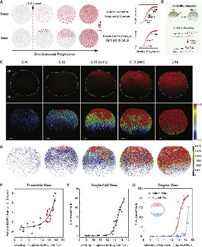 (E–G) Ensemble view (E), single-cell view (F), and regional view (G) of ZGA. Each point indicates one embryo. Exponential (E) or sigmoidal (F and G) fit to data as visual aid.